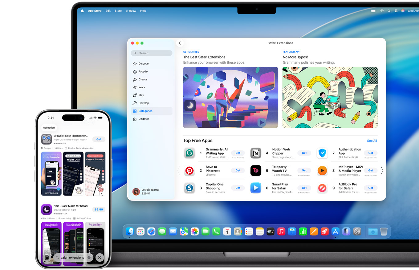 Safari Extensions add functionality to your browser to help you explore the web the way you want. Find and add your favorite extensions in the dedicated Safari category on the App Store.